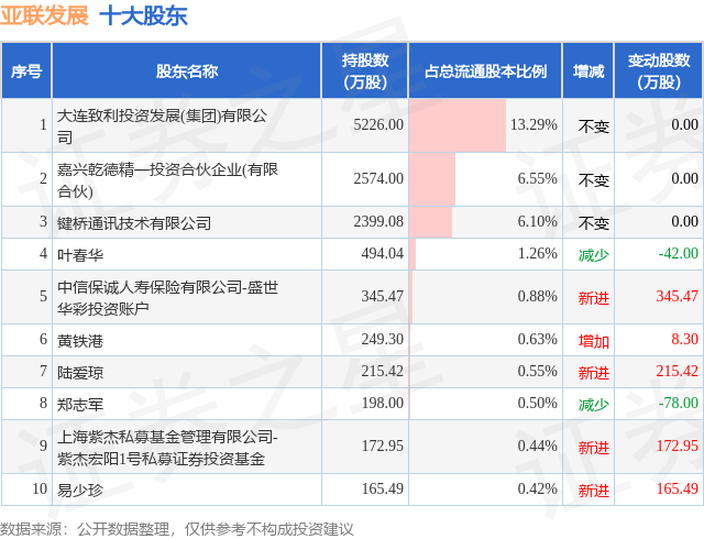 根据亚联发展2025年三季报公布的十大股东详情如下: