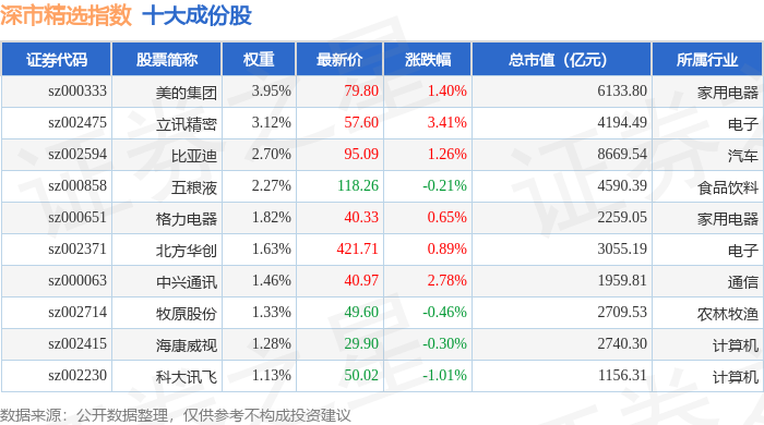 深市精选(399013)指数十大成份股详情如下: