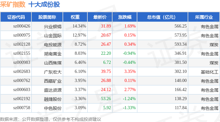 证券之星消息,11月26日,采矿指数(399232)报收于3730.28点,涨0.2%,成交140.39亿元,换手率2.17%。当日该指数成份股中,上涨的有10家,贝肯能源以5.23%的涨幅领涨,下跌的有19家,首华燃气以3.28%的跌幅领跌。