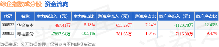 资金流向方面,综企指数(399249)成份股当日主力资金净流出合计7430.53万元,游资资金净流入合计1434.94万元,散户资金净流入合计5995.6万元。成份股资金流向详情见下表: