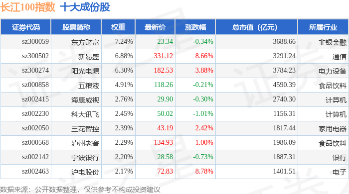 证券之星消息,11月26日,长江100(399278)指数报收于2030.98点,涨1.35%,成交1509.52亿元,换手率1.38%。当日该指数成份股中,上涨的有48家,迈为股份以12.75%的涨幅领涨,下跌的有50家,滨江集团以4.73%的跌幅领跌。