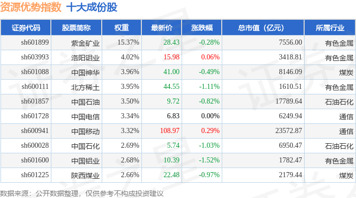 资金流向方面,资源优势(399319)指数成份股当日主力资金净流出合计25.56亿元,游资资金净流入合计9.72亿元,散户资金净流入合计15.84亿元。成份股资金流向详情见下表: