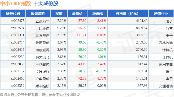 证券之星消息,11月26日,中小100R(399333)指数报收于9581.75点,涨0.78%,成交1156.61亿元,换手率1.28%。当日该指数成份股中,上涨的有44家,石基信息以10.0%的涨幅领涨,下跌的有50家,东方雨虹以4.91%的跌幅领跌。