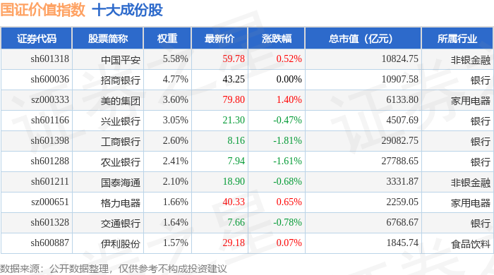 国证价值(399371)指数十大成份股详情如下: