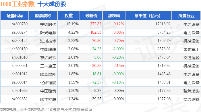 1000工业(399383)指数十大成份股详情如下: