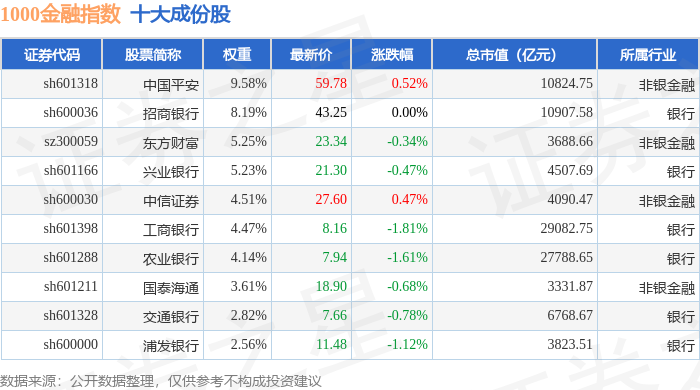 证券之星消息,11月26日,1000金融(399387)指数报收于5546.16点,跌0.48%,成交523.25亿元,换手率0.33%。当日该指数成份股中,上涨的有17家,电投产融以2.68%的涨幅领涨,下跌的有72家,江苏金租以2.13%的跌幅领跌。