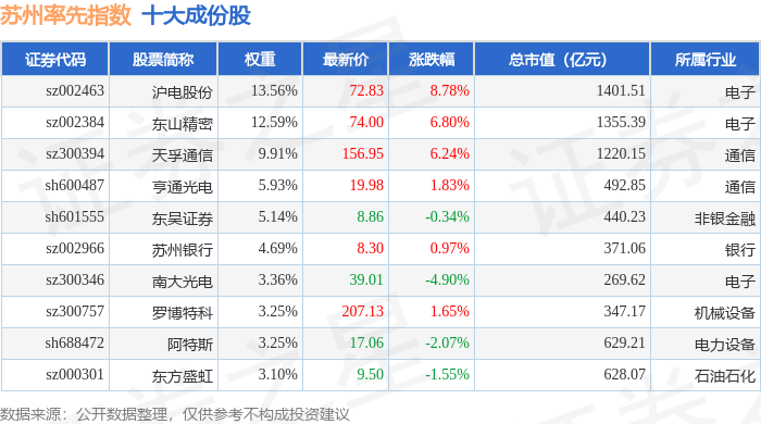 苏州率先(399410)指数十大成份股详情如下: