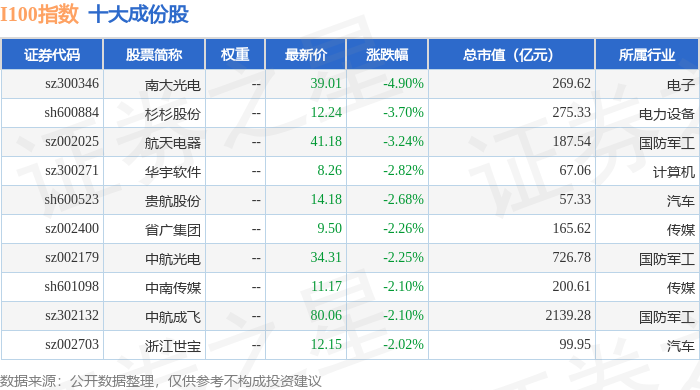 证券之星消息,11月26日,I100(399415)指数报收于6702.45点,涨0.31%,成交891.14亿元,换手率0.42%。当日该指数成份股中,上涨的有26家,美克家居以9.96%的涨幅领涨,下跌的有69家,南大光电以4.9%的跌幅领跌。
