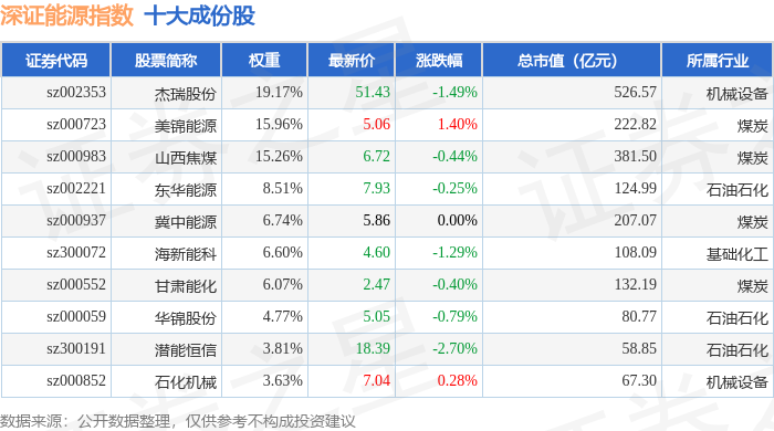 深证能源(399613)指数十大成份股详情如下: