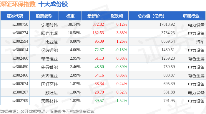 证券之星消息,11月26日,深证环保(399638)指数报收于7351.43点,涨0.61%,成交675.95亿元,换手率1.27%。当日该指数成份股中,上涨的有16家,迈为股份以12.75%的涨幅领涨,下跌的有21家,新宙邦以2.58%的跌幅领跌。