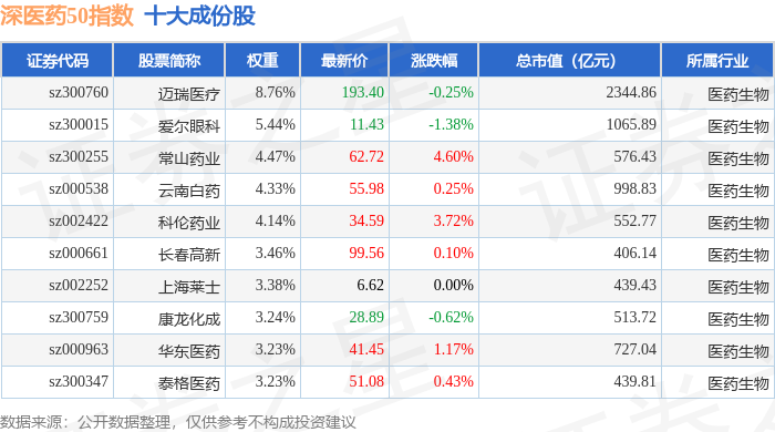 证券之星消息,11月26日,深医药50(399647)指数报收于8131.69点,涨0.54%,成交175.36亿元,换手率1.24%。当日该指数成份股中,上涨的有24家,信立泰以5.69%的涨幅领涨,下跌的有25家,爱尔眼科以1.38%的跌幅领跌。