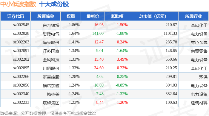 证券之星消息,11月26日,中小低波(399663)指数报收于1929.15点,跌0.06%,成交295.25亿元,换手率0.82%。当日该指数成份股中,上涨的有37家,信立泰以5.69%的涨幅领涨,下跌的有57家,中航光电以2.25%的跌幅领跌。