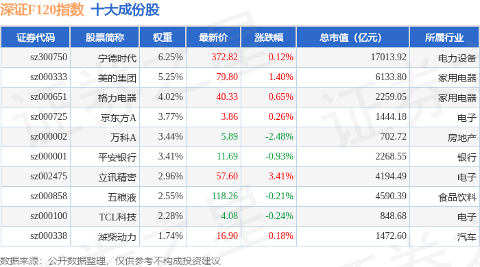 证券之星消息,11月26日,深证F120(399702)指数报收于7441.02点,涨0.25%,成交1376.53亿元,换手率0.94%。当日该指数成份股中,上涨的有50家,中集集团以10.0%的涨幅领涨,下跌的有61家,东方雨虹以4.91%的跌幅领跌。