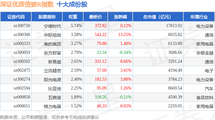 证券之星消息,11月26日,深证优质信披R(470065)指数报收于3550.93点,涨1.26%,成交3641.31亿元,换手率1.46%。当日该指数成份股中,上涨的有183家,中际旭创以13.25%的涨幅领涨,下跌的有288家,京粮控股以9.98%的跌幅领跌。