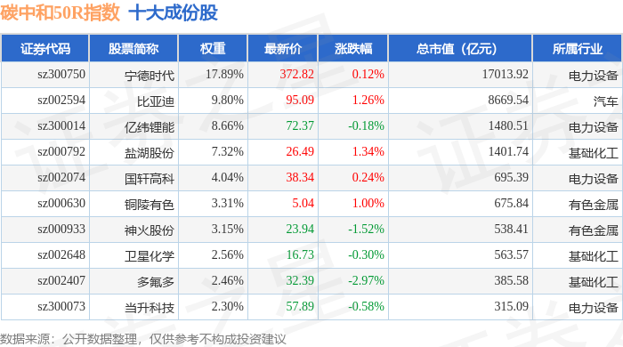 碳中和50R(480021)指数十大成份股详情如下: