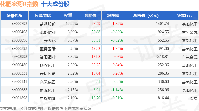 资金流向方面,化肥农药R(480035)指数成份股当日主力资金净流出合计6.04亿元,游资资金净流入合计3.29亿元,散户资金净流入合计2.72亿元。成份股资金流向详情见下表: