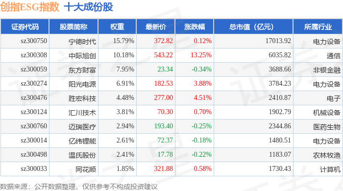 资金流向方面,创指ESG(970028)指数成份股当日主力资金净流入合计20.16亿元,游资资金净流出合计19.72亿元,散户资金净流出合计4367.84万元。成份股资金流向详情见下表: