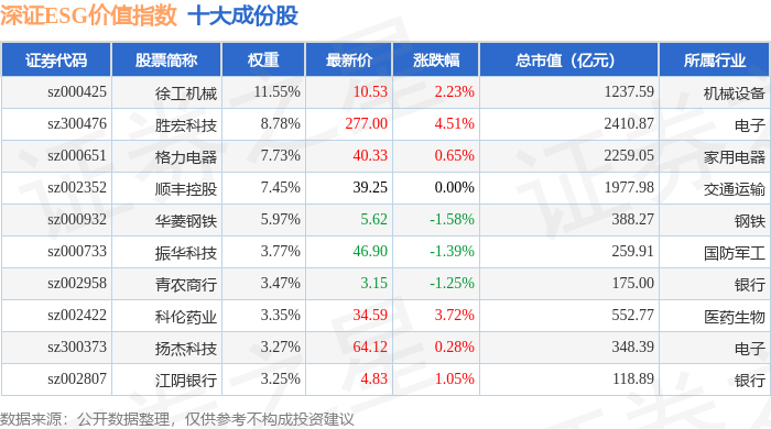 证券之星消息,11月26日,深证ESG价值(970061)指数报收于1599.14点,涨0.76%,成交280.67亿元,换手率1.41%。当日该指数成份股中,上涨的有21家,七匹狼以10.02%的涨幅领涨,下跌的有26家,军信股份以5.17%的跌幅领跌。
