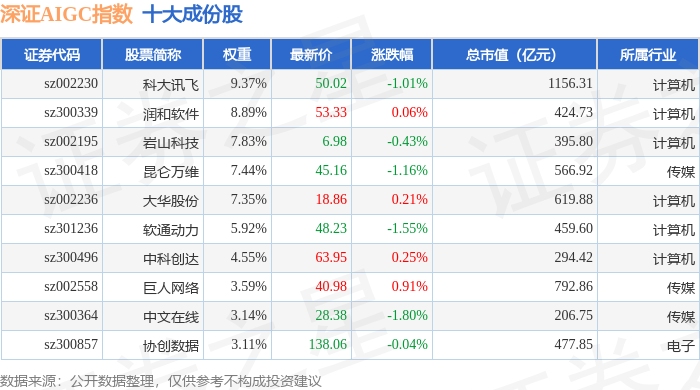 资金流向方面,深证AIGC(970075)指数成份股当日主力资金净流出合计14.36亿元,游资资金净流出合计6.81亿元,散户资金净流入合计21.17亿元。成份股资金流向详情见下表: