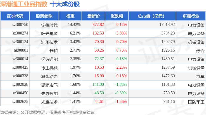 深港通工业品(983069)指数十大成份股详情如下: