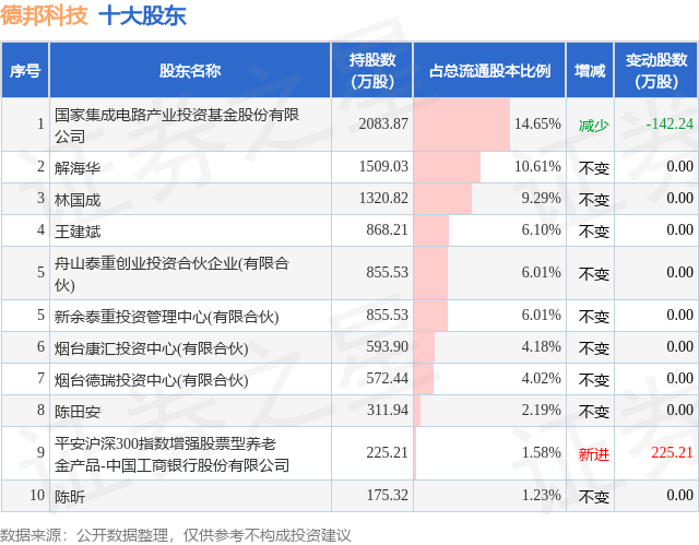 根据德邦科技2025年三季报公布的十大股东详情如下: