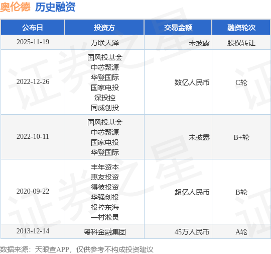 证券之星消息,根据天眼查APP于11月19日公布的信息整理,深圳市奥伦德元器件有限公司股权转让融资,交易额未披露。