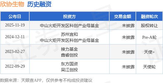 证券之星消息,根据天眼查APP于11月19日公布的信息整理,苏州欣协生物科技有限公司股权转让融资,交易额未披露。