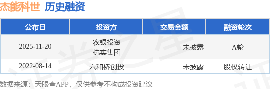 证券之星消息,根据天眼查APP于11月20日公布的信息整理,杰能科世智能安全科技(杭州)有限公司A轮融资,融资额未披露,参与投资的机构包括农银投资,杭实集团。