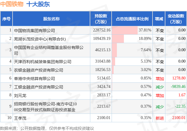根据中国铁物2025年三季报公布的十大股东详情如下: