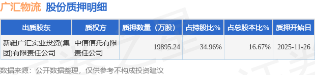 证券之星消息,广汇物流(600603)11月27日公开信息显示,股东新疆广汇实业投资(集团)有限责任公司向中信信托有限责任公司合计质押1.99亿股,占总股本16.67%。质押详情见下表: