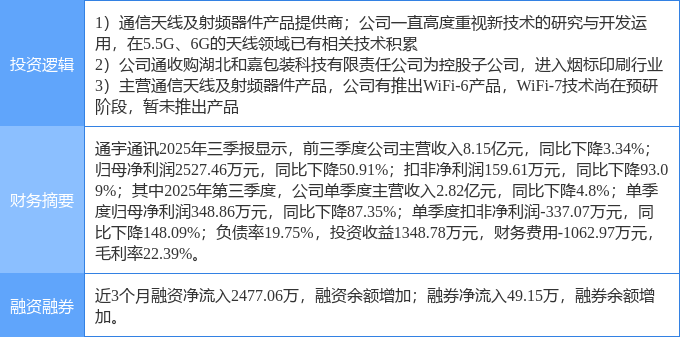 证券之星消息,通宇通讯11月27日涨停收盘,收盘价21.62元。该股于11点21分涨停,未打开涨停,截止收盘封单资金为1.31亿元,占其流通市值1.82%。