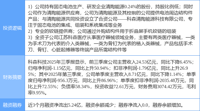 该股为固态电池,折叠屏,骨科材料概念热股,当日固态电池概念上涨2.16%,折叠屏概念上涨1.45%,骨科材料概念上涨1.27%。