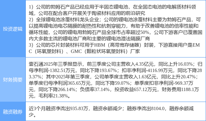 该股为固态电池,锂电池,高带宽存储器HBM概念热股,当日固态电池概念上涨2.16%,锂电池概念上涨1.86%,高带宽存储器HBM概念上涨1.5%。