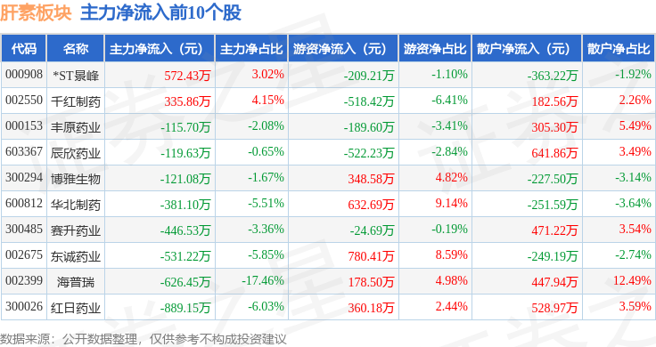 从资金流向上来看,当日肝素板块主力资金净流出2.16亿元,游资资金净流入9861.68万元,散户资金净流入1.17亿元。肝素板块个股资金流向见下表: