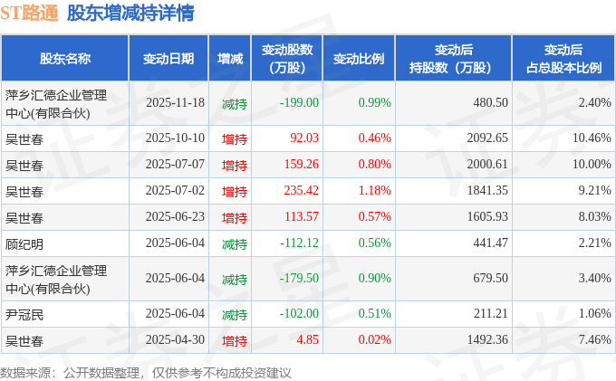 该股近半年内有股东持股变动,合计净增持12.52万股,股东增减持明细如下表: