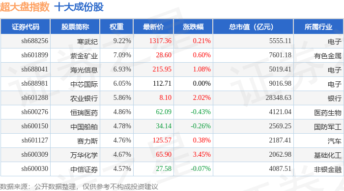 资金流向方面,超大盘(000043)指数成份股当日主力资金净流入合计5.83亿元,游资资金净流出合计2.65亿元,散户资金净流出合计3.18亿元。成份股资金流向详情见下表: