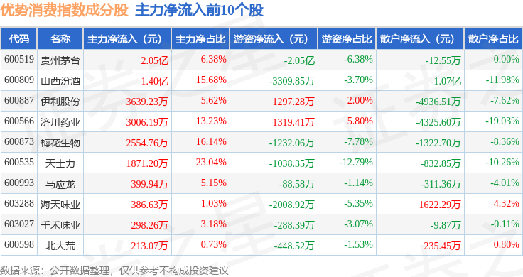 资金流向方面,优势消费(000147)指数成份股当日主力资金净流出合计1.6亿元,游资资金净流出合计1567.56万元,散户资金净流入合计1.76亿元。成份股资金流向详情见下表: