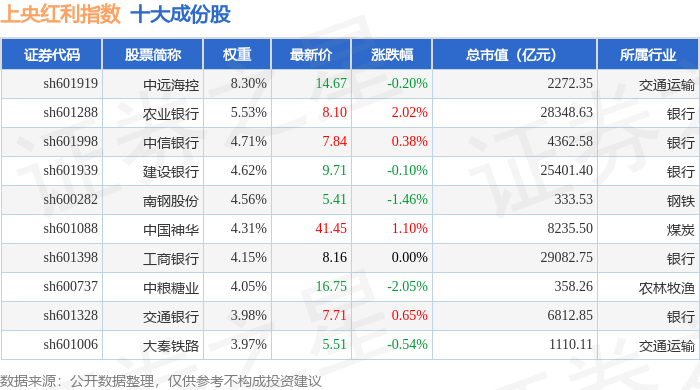 证券之星消息,11月27日,上央红利(000152)指数报收于2920.31点,涨0.01%,成交226.7亿元,换手率0.18%。当日该指数成份股中,上涨的有9家,内蒙华电以2.47%的涨幅领涨,下跌的有16家,中粮糖业以2.05%的跌幅领跌。