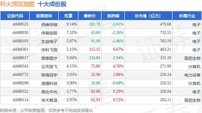 科大湾区(000697)指数十大成份股详情如下: