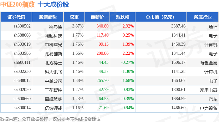中证200(000904)指数十大成份股详情如下: