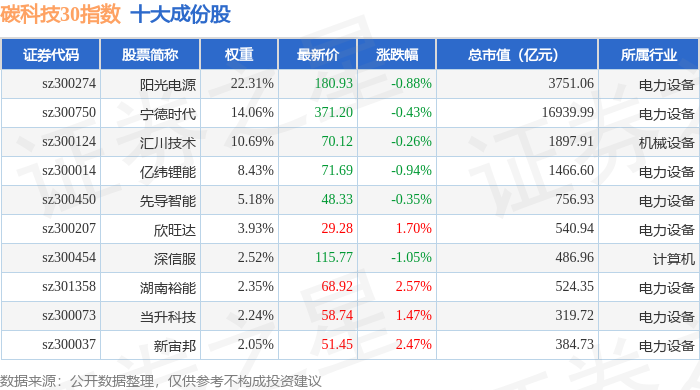 碳科技30(399030)指数十大成份股详情如下: