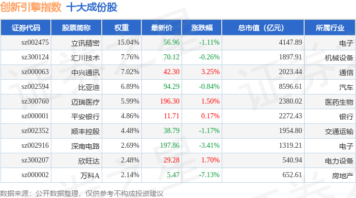 创新引擎(399050)指数十大成份股详情如下: