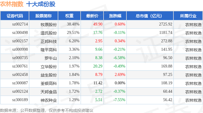 资金流向方面,农林指数(399231)成份股当日主力资金净流出合计2.3亿元,游资资金净流入合计1.14亿元,散户资金净流入合计1.15亿元。成份股资金流向详情见下表: