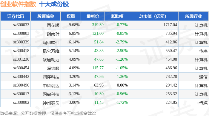 资金流向方面,创业软件(399264)指数成份股当日主力资金净流出合计13.02亿元,游资资金净流入合计2.15亿元,散户资金净流入合计10.87亿元。成份股资金流向详情见下表: