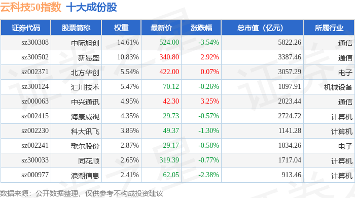证券之星消息,11月27日,云科技50(399279)指数报收于4577.99点,跌0.62%,成交1095.28亿元,换手率2.19%。当日该指数成份股中,上涨的有12家,中兴通讯以3.25%的涨幅领涨,下跌的有37家,石基信息以9.98%的跌幅领跌。