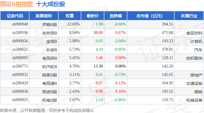 证券之星消息,11月27日,国证B指(399318)指数报收于5124.27点,跌0.32%,成交1.45亿元,换手率0.12%。当日该指数成份股中,上涨的有29家,市北B股以2.87%的涨幅领涨,下跌的有35家,深中华B以3.23%的跌幅领跌。
