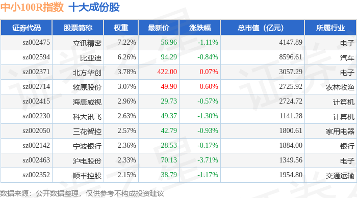 中小100R(399333)指数十大成份股详情如下:
