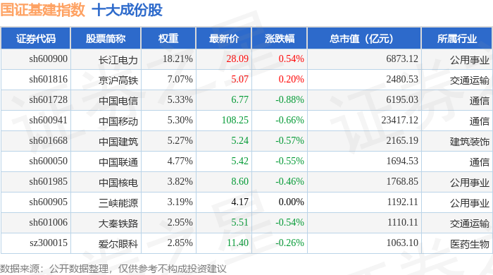 国证基建(399359)指数十大成份股详情如下: