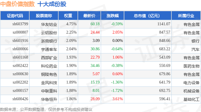 证券之星消息,11月27日,中盘价值(399375)指数报收于5607.46点,涨0.25%,成交346.95亿元,换手率0.79%。当日该指数成份股中,上涨的有55家,太阳纸业以3.87%的涨幅领涨,下跌的有36家,中材国际以2.1%的跌幅领跌。