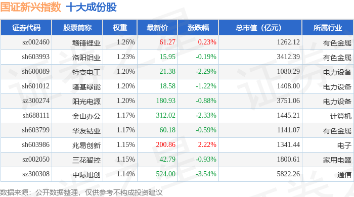 国证新兴(399392)指数十大成份股详情如下: